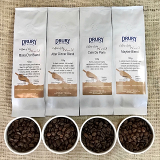 With one exception (1Kg Beans) EVERY pack of Drury coffee sold via this website is prepared to order. We weigh, grind (if required) and pack your coffee in our heat-sealed foil bags which are equipped with a one-way valve that allows the freshly roasted coffee to release its wonderful-smelling aromas without letting any oxygen in, ensuring your coffee stays fresher for longer.